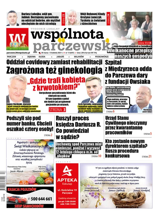 Informacje parczewskieTrzecia fala epidemii czy śmierć maleńkiej Elizy - m.in. tym żyli w kończącym się już 2021 roku mieszkańcy powiatu parczewskiego. Przypominamy najważniejsze, naszym zdaniem, wydarzenia i powiązane z nimi okładki "Wspólnoty Parczewskiej".