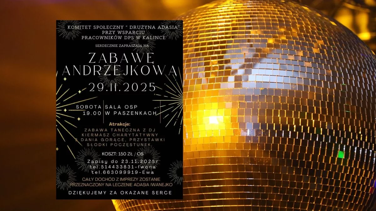 Komitet Społeczny "Drużyna Adasia", przy wsparciu pracowników Domu Pomocy Społecznej w Kalince, zaprasza mieszkańców gminy i okolic na zabawę Andrzejkową, która odbędzie się w sobotę 29 listopada w sali OSP w Paszenkach (gm. Jabłoń).