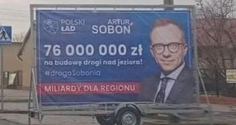 Baner Artura Sobonia przy ważnej drodze. Nasz Czytelnik zastanawia się, czy to oznacza przedterminowe wybory?