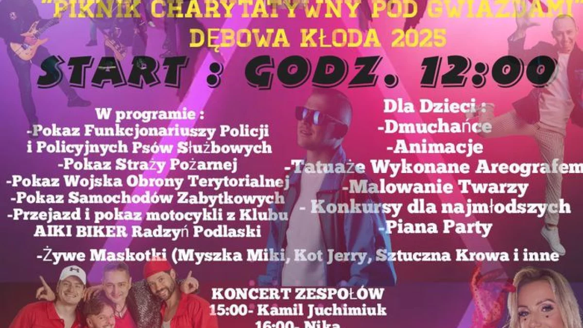 Wydarzenie zacznie się o godzinie 12 w Dębowej Kłodzie. W planie jest m.in. pokaz w wykonaniu funkcjonariuszy policji, pokaz Wojska Obrony Terytorialnej, zabawa na dmuchańcach, animacje czy występy zespołów muzycznych. Wystąpi m.in. duet zespołów „Nie odmawiam&Rajmund”. W programie jest zbiórka pieniędzy na rzecz Centrum Zdrowia Psychicznego w Parczewie.