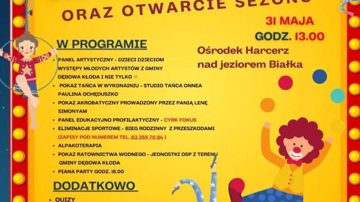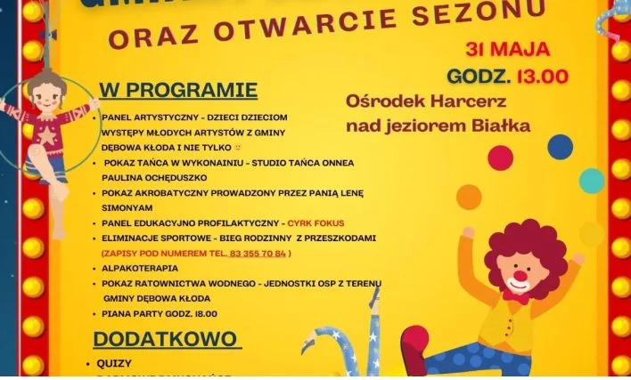 Informacje parczewskieNa Gminny Dzień Dziecka zaprasza w sobotę, 31 maja Gminny Ośrodek Kultury w Dębowej Kłodzie. W programie będą m.in. występy artystyczne. Początek o godzinie 13 w ośrodku Harcerz nad jeziorem Bialskim.