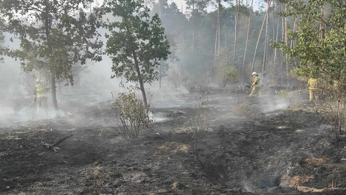 - Dym widoczny był z naszej jednostki oddalonej blisko 12 km w linii prostej. Po dojeździe na miejsce zastaliśmy rozwinięty pożar kompleksu leśnego - ściółki oraz drzew. Naszym zadaniem było ograniczenie rozprzestrzeniania się pożaru oraz przelewanie pogorzeliska wodą z linii gaśniczych. Kamera termowizyjna pomagała nam przy lokalizacji pozostałych zarzewi ognia. W działaniach brały udział także quady oraz dron z termowizją. Do garażu powróciliśmy po godz. 23 - relacjonują druhowie. Oprócz nich na miejscu pracowało kilkanaście zastępów straży pożarnej.