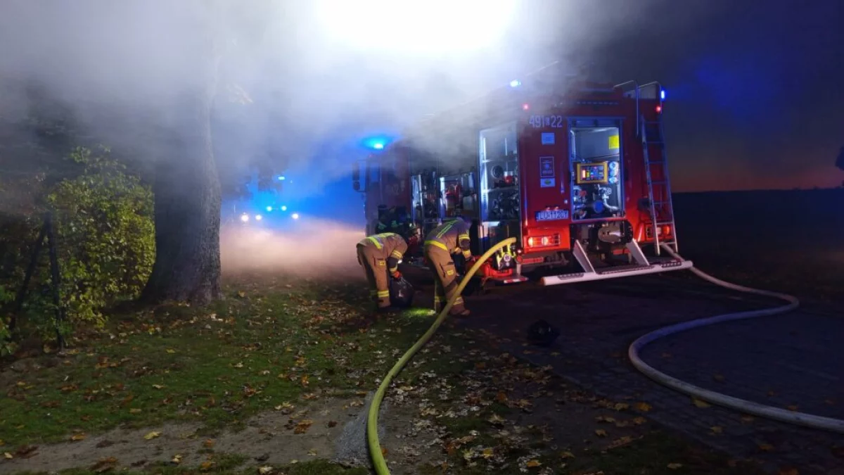 W chwili przyjazdu na miejsce pierwszych zastępów pożarem objęty był cały budynek. Pierwsze działania strażaków polegały na zabezpieczeniu miejsca zdarzenia i podaniu prądów wody na palący się dom, samochód osobowy oraz szpaler z tui. Mieszkańcom: kobiecie i nastoletniemu synowi udało się wydostać przed przyjazdem pierwszych zastępów.