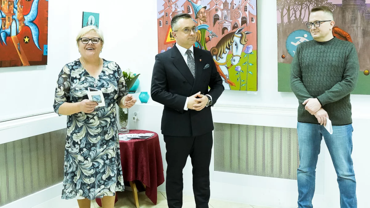 W trakcie uroczystości autor zaprezentował cykl najnowszych obrazów wykonanych techniką sztalugową, które w kompozycji łączą kolor, formę i symbolikę (niektóre o całkiem mrocznej tematyce, sub. opinia Redakcji).