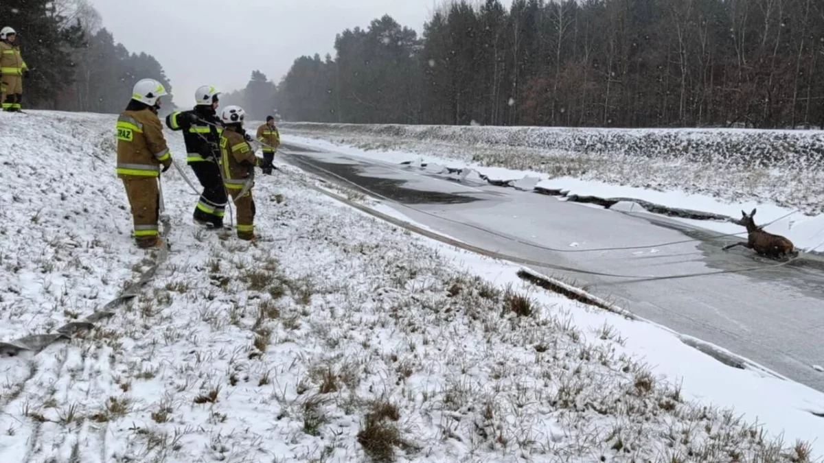 Zgłoszenie dotyczyło jelenia, pod którym załamał się lód i nie mógł się samodzielnie wydostać.