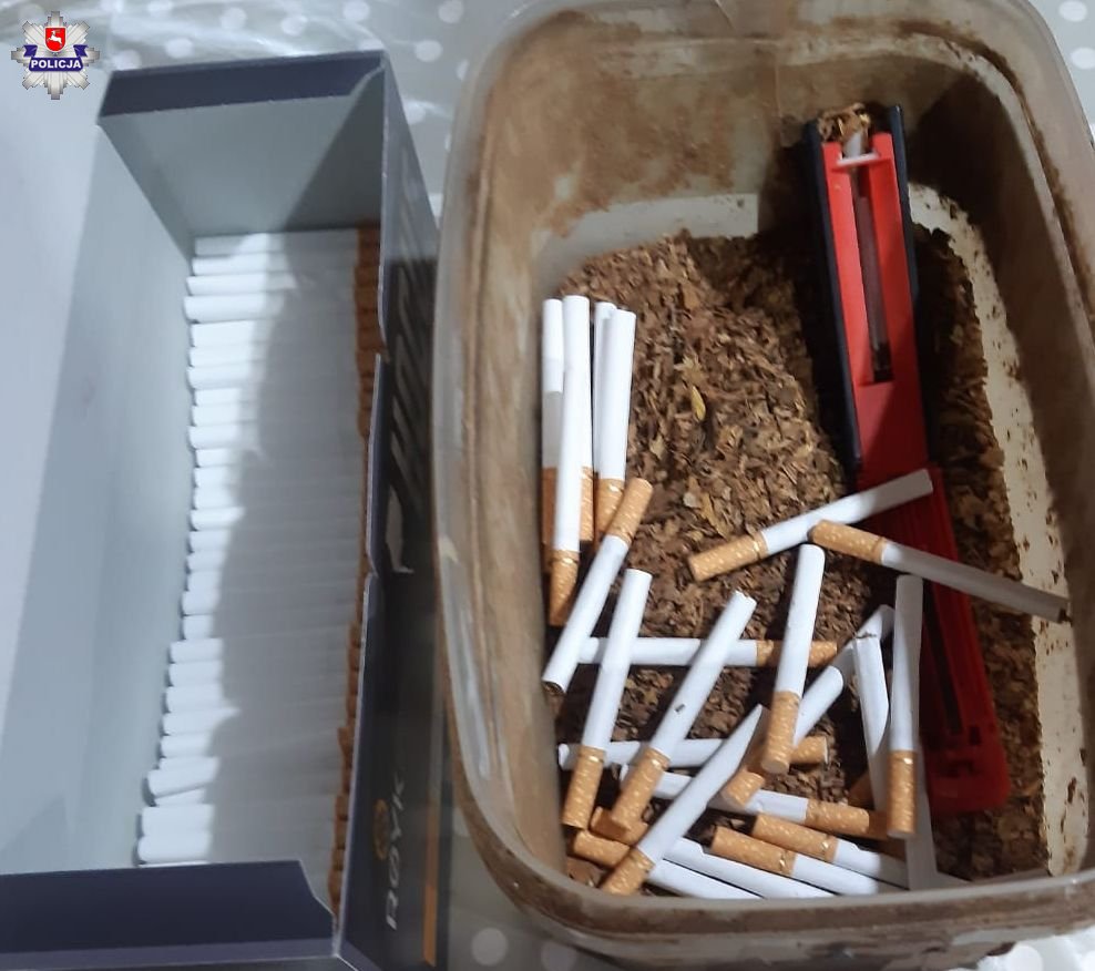 Do zdarzenia doszło wczoraj (2 września) przed południem. Parczewscy policjanci na podstawie własnych ustaleń wspólnie z funkcjonariuszami Służby Celno-Skarbowej w Białej Podlasce weszli na teren jednej z posesji w gminie Sosonowica. Tam dokonali przeszukania pomieszczeń mieszkalnych oraz gospodarczych należących do 56-latka. W trakcie przeszukania ujawniono i zabezpieczono ponad 60 kilogramów nielegalnego suszu w liściach, maszynkę służącą do nabijania papierosów, puste gilzy oraz kilka dzieciąt sztuk gotowych już papierosów.