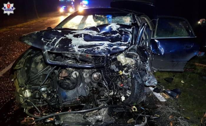 20-letni kierowca audi zjechał na przeciwny pas ruchu i czołowo zderzył się z volkswagenem. Chłopak po kilku godzinach zmarł w szpitalu. Do szpitala trafił również 62-letni kierowca volkswagena i jego 65-letnia pasażerka.