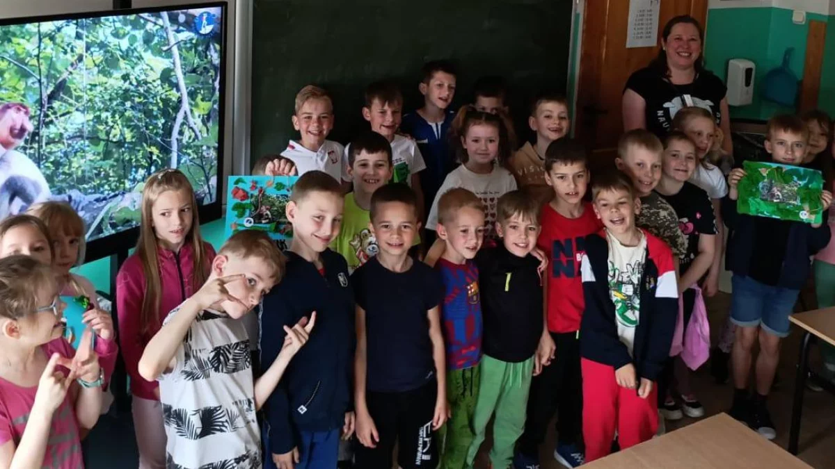 Podczas spotkania, pani Sabina opowiadała, jak powstawały podręczniki, z których korzystają dzieci. Uczniowie z zaangażowaniem słuchali ciekawostek wydawniczych, m.in.: kto tworzy ilustracje, ile czasu zajmuje przygotowanie strony. Oprócz tego dzieci poznały bohaterów książek: Natalkę i Antka. Na zakończenie pani Sabina przeprowadziła warsztaty, podczas których dzieci dowiedziały się, kto mieszka w dżungli, jak wygląda bambus i rodzina nosaczy, a także wykonały przestrzenną pracę plastyczną, przedstawiającą dżunglę.