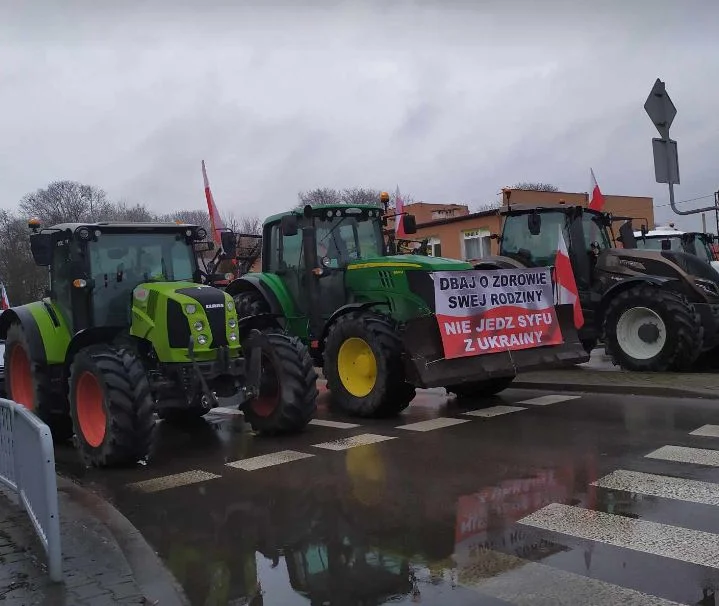 Do ciągników doczepione zostały biało-czerwone flagi, a jeden z farmerów przyniósł ze sobą transparent "import bez kontroli wszystko rozpi......".