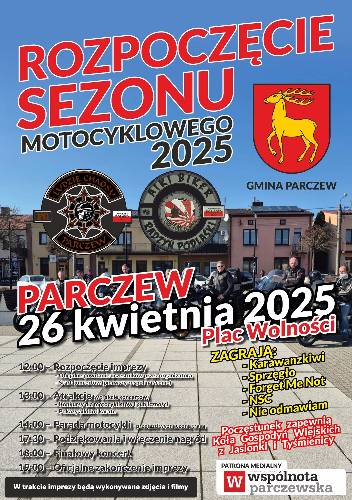 Informacje parczewskieOtwarcie sezonu motocyklowego odbędzie się w sobotę, 26 kwietnia w Parczewie. Początek wydarzenia o godzinie 12 na Placu Wolności.