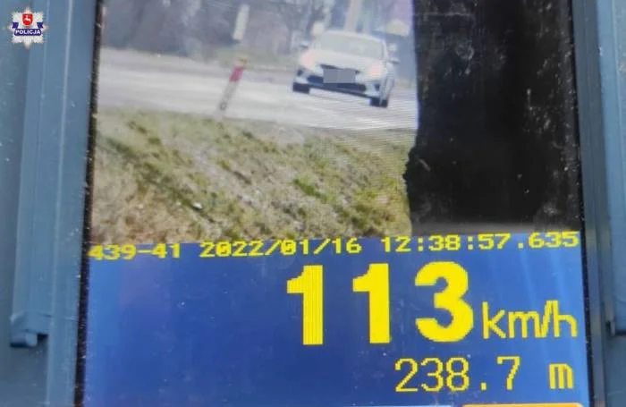 Do zdarzenia doszło w niedzielę, 16 stycznia. Funkcjonariusze patrolowali ul. 11 Listopada w Parczewie, która w tym miejscu jest częścią drogi wojewódzkiej numer 815 (łączy Wisznice w pow. bialskim z Lubartowem). Zatrzymali do kontroli 23-letniego mieszkańca Lublina. – Jechał osobową Kią Ceed znacznie szybciej niż pozwalają na to przepisy. Osiągnął prędkość 113 km/h w terenie zabudowanym, czyli w miejscu, gdzie obowiązuje ograniczenie do 50 km/h – relacjonuje starszy sierżant Ewelina Semeniuk, oficer prasowy Komendy Powiatowej Policji w Parczewie.