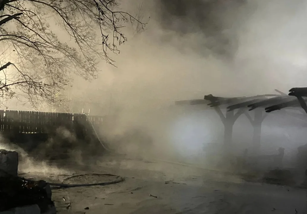 Zgłoszenie dotyczyło pożaru altany oraz przyległych budynków.