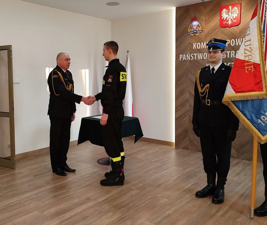 Następnie Łukasz Łucjan oraz Hubert Szymczak złożyli podpisy pod aktami ślubowania. Nowi ratownicy zaczynają swoją służbę od szkolenia podstawowego organizowanego przez Szkołę Podoficerską PSP w Bydgoszczy.