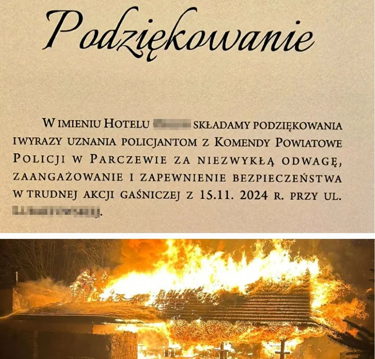 - Jak podaje autor podziękowań „to dzięki Waszemu działaniu udało się uratować hotel oraz pozostałe budynki….. Wyrażamy wdzięczność za nieocenioną pomoc i poświęcenie”. Na koniec oprócz słów uznania życzył funkcjonariuszom „nieustającej satysfakcji z podejmowanych działań” - dodaje sierżant sztabowy Ewelina Semeniuk.