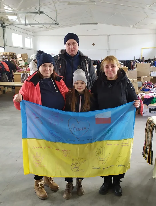 Nasi sąsiedzi dziękują za otrzymaną w Parczewie pomoc. Nataliia Brygoła, Karol Brygoła (jej mąż, pochodzi z Polski) oraz Kristina Fedonchuk przekazali wolontariuszom, jako wyraz wdzięczności, narodową flagę Ukrainy. – Pani Natalia przyjechała do Polski do pracy i już tu została (...)