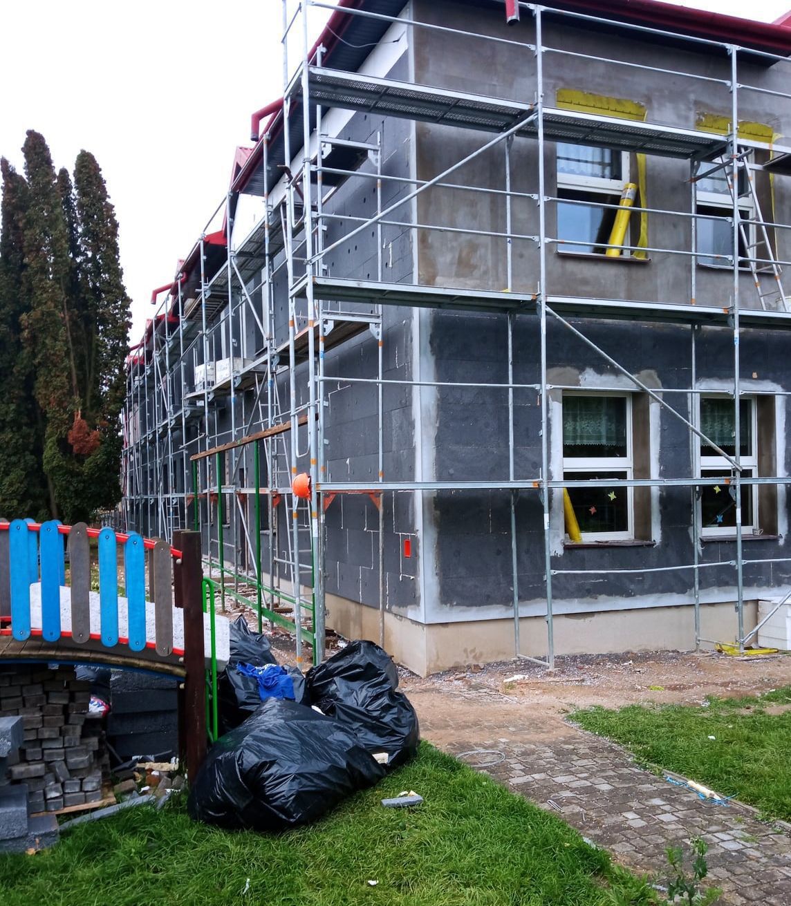Udało się jednak wybrać wykonawcę termomodernizacji ZPO. Prace już trwają. Docieplone zostały już m.in. ściany zewnętrzne. Wszystko odbywa się z wykorzystaniem styropianu o grubości 16 cm. Zakres prac obejmuje też m.in.: docieplenie ściany fundamentowej "styropianem ekstrudowanym styrodurem", wymianę drzwi zewnętrznych, wymianę centralnego ogrzewania, wymianę "zwykłego oświetlenia" na energooszczędne typu LED oraz wymianę instalacji solarnej. Wszystko ma być gotowe w ciągu pięciu miesięcy od podpisania umowy z wykonawcą, która została zawarta latem.