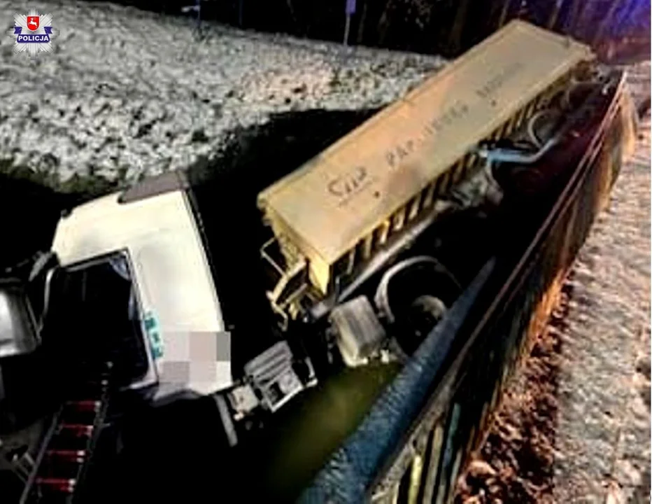 We wtorek (21 listopada) w Nowym Orzechowie na drodze wojewódzkiej numer 820 46-latek kierujący ciężarowym samochodem marki Volvo jadąc od strony Łęcznej w kierunku Parczewa, nie dostosował prędkości do warunków drogowych. W efekcie wjechał do kanału Wieprz-Krzna.