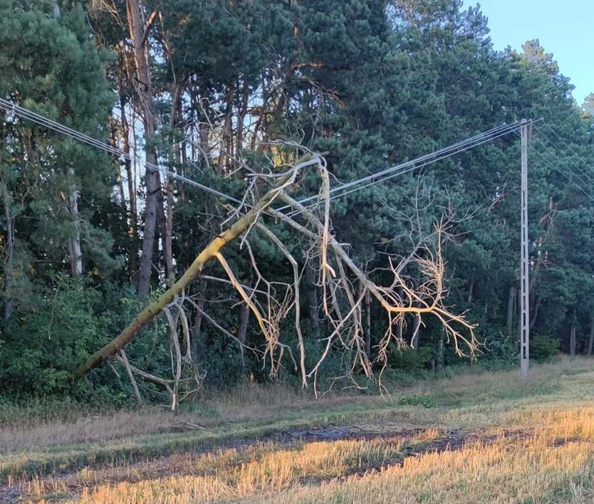 Służby ratunkowe dostały zgłoszenie o pożarze ścierniska w leżącej wzdłuż drogi wojewódzkiej numer 815 miejscowości Królewski Dwór. Na miejsce pojechali m.in. druhowie z Ochotniczej Straży Pożarnej w Koczergach (5 osób). – Zastaliśmy nadpalone ściernisko oraz drzewo przewrócone na linię energetyczną średniego napięcia, które było powodem zwarcia oraz wystąpienia pożaru – relacjonują ochotnicy.