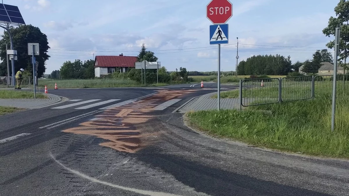 Rozlana substancja stanowiła zagrożenie dla uczestników ruchu, szczególnie dla jednośladów.