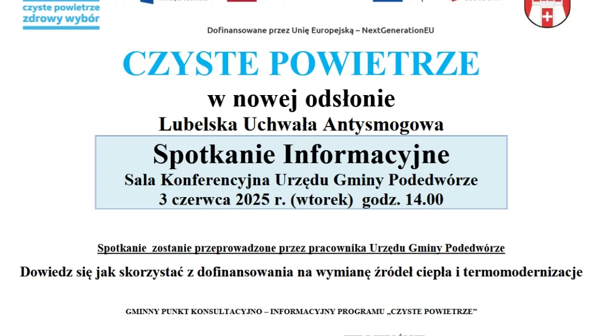 Informacje parczewskieGmina Podedwórze zaprasza na spotkanie informacyjne w ramach Programu Czyste Powietrze.