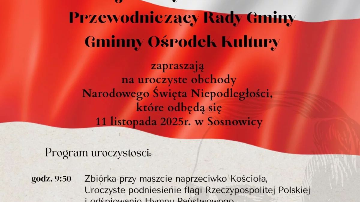 Godz. 9.50 – zbiórka przy maszcie naprzeciwko Kościoła, uroczyste podniesienie flagi i odśpiewanie hymnu