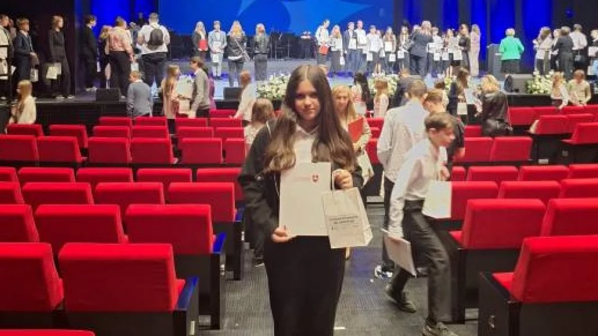 Zdj. Marta Małafiejew odebrała prestiżowe stypendium w ramach programów "Lubelska kuźnia talentów 2025-2026" oraz "Lubelskie wspiera uzdolnionych 2025-2026". W drodze do tego wyróżnienia wspierała ją opiekunka dydaktyczna, Izabela Krzysiak