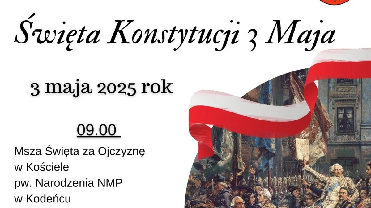 Obchody zaczną się o godz. 9 od mszy świętej za ojczyznę w Kościele pw. Narodzenia NMP w Kodeńcu. O godz. 10 nastąpi przemarsz pod pomnik Konstytucji 3 Maja w Kodeńcu, złożenie kwiatów, odśpiewanie pieśni patriotycznych oraz część artystyczna w wykonaniu dzieci i młodzieży ze Szkoły Podstawowej w Kodeńcu.