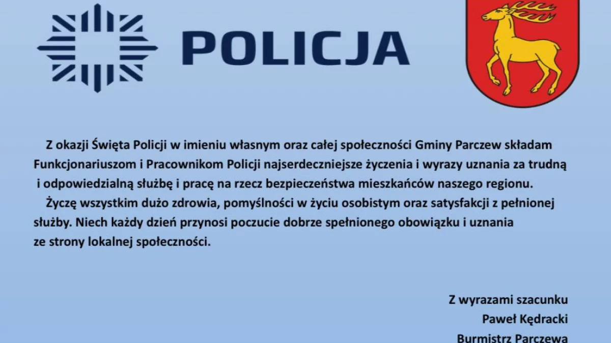 Informacje parczewskieŻyczenia z okazji święta policji złożył mundurowym burmistrz Paweł Kędracki.