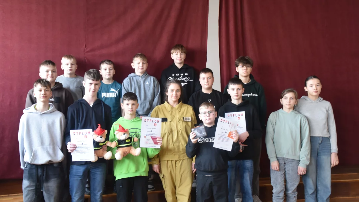 W grupie I (klasy I-IV) najlepsi okazali się: Szymon Kuzko i Maciej Korpysz, natomiast w grupie II (klasy V-VIII) zwyciężyli: Karol Kuzko i Cezary Kuzko. Warto podkreślić, że trzej z nich to bracia, co pokazuje, że wspólne rozwijanie pasji w drużynie Młodzieżowej Drużyny Pożarniczej oraz zainteresowanie wiedzą pożarniczą przynosi wymierne efekty.