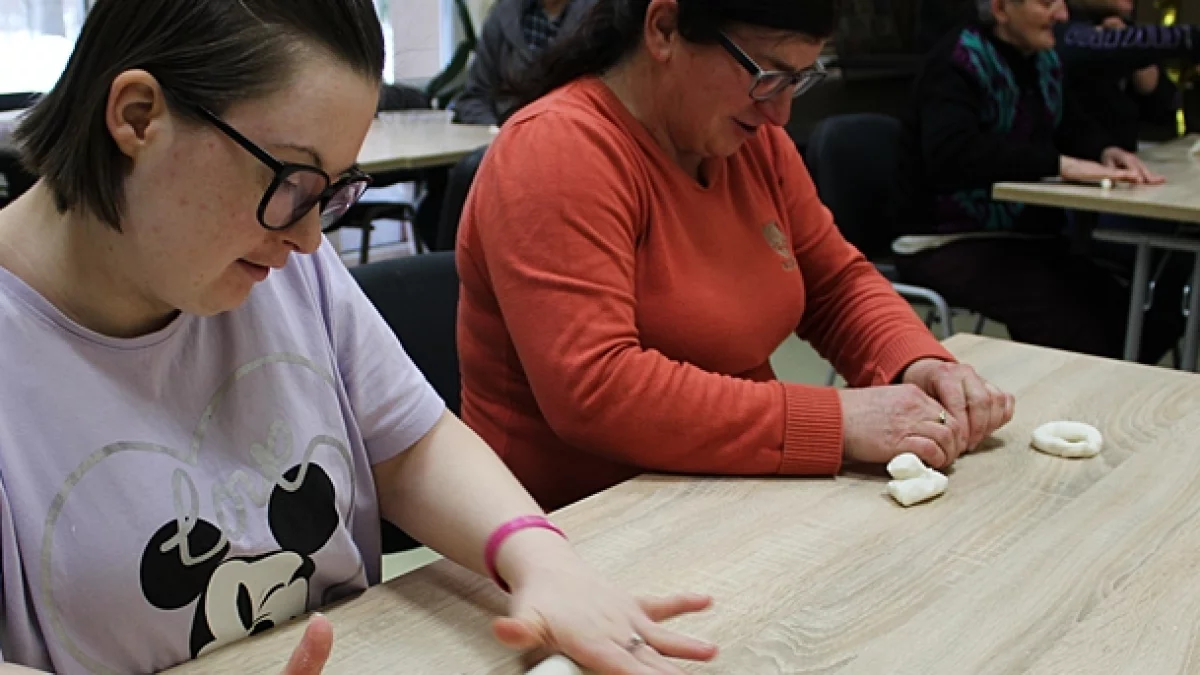 Podczas treningu kulinarnego pod czujnym okiem terapeuty uczestnicy samodzielnie przygotowywali ciasto na pączki. Z dużym zaangażowaniem odmierzały składniki, wyrabiały ciasto i formowały pączki, które następnie zostały usmażone na złocisty kolor. Dla wielu osób było to nie tylko ciekawe doświadczenie kulinarne, ale również okazja do nauki współpracy i rozwijania samodzielności.