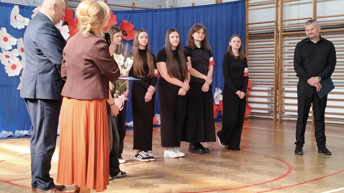 Uczniowie mieli doczepioną do rękawa biało-czerwoną flagę. W wydarzeniu wzięli udział m.in.: wójt Mariusz Hołowieniec oraz Jarosław Armaciński, przewodniczący Rady Gminy Sosnowica.