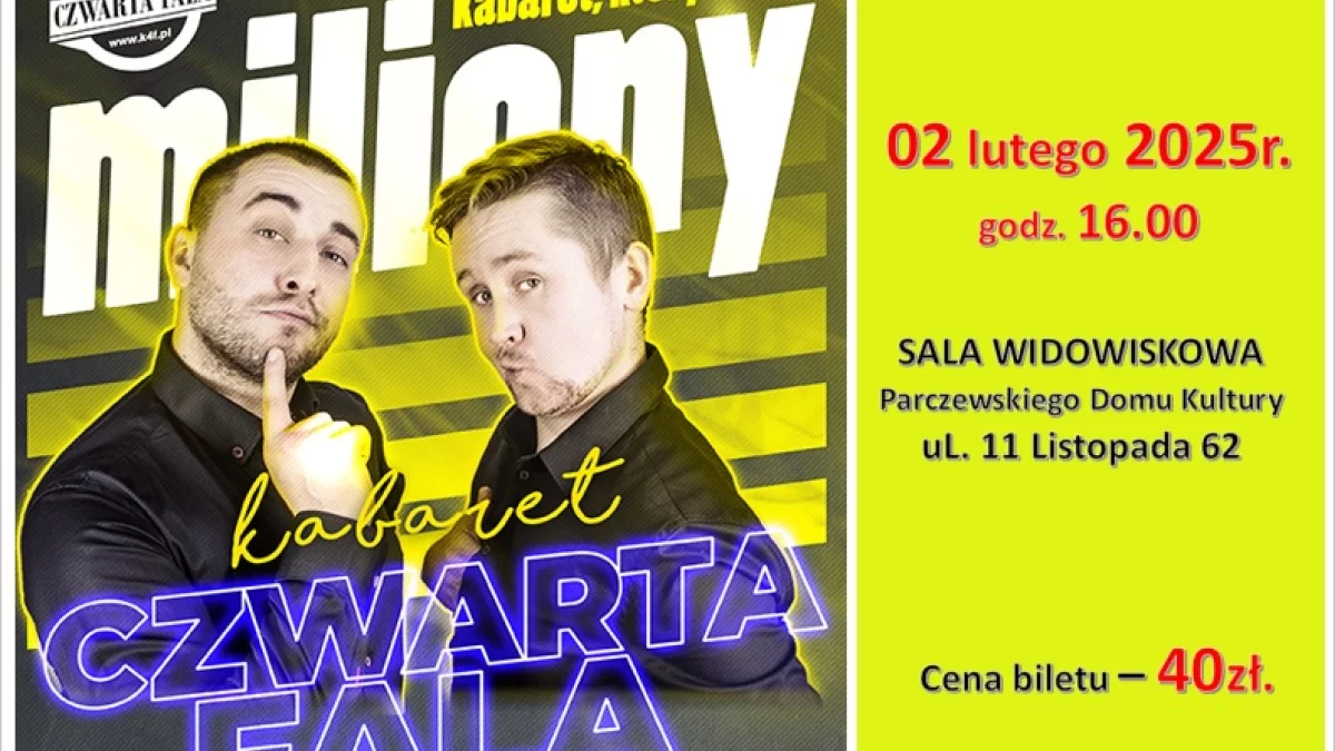 Informacje parczewskieNa występ kabaretu „Czwarta Fala” zaprasza Parczewski Dom Kultury. Wydarzenie odbędzie się w niedzielę, 2 lutego o godzinie 16.