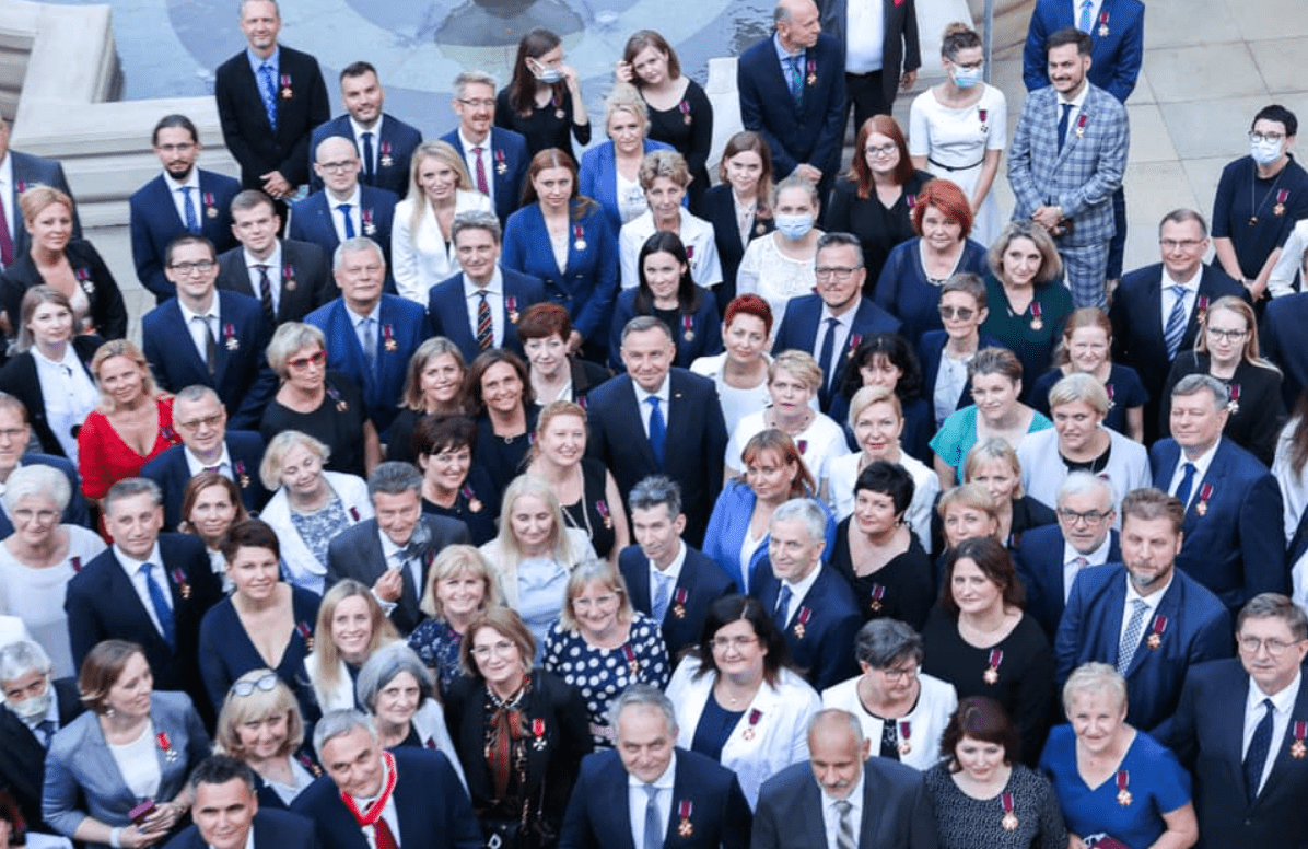 Dodawał też, że odznaczeni są przedstawicielami różnych dziedzin: medycyny, nauk medycznych, lekarze, pielęgniarki, ratownicy, naukowcy, pracownicy laboratoriów, młodzi adepci nauki polskiej.