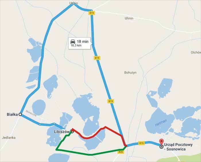 Wójt gminy Sosnowica powiedziała nam, że droga z Sosnowicy do Białki przez Libiszów była drogą zwyczajową, a odcinek należący do gminy sięga jedynie do zamkniętego już wysypiska śmieci.