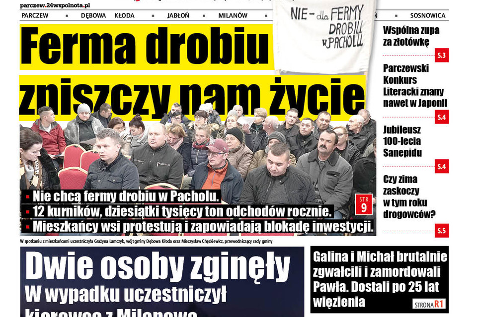 W środę, 27 listopada, na stronie w Biuletynie Informacji Publicznej gminy Dębowa Kłoda pojawiła się informacja o wszczęciu postępowania w sprawie wydania decyzji o środowiskowych uwarunkowaniach dla budowa fermy drobiu w obrębie sołectwa Pachole. Obwieszczenie dotyczące tej procedury trafiło też do sołtysa, który na sesji 30 listopada poprosił wójt Grażynę Lamczyk o udział w zebraniu wiejskim i przekazanie mieszkańcom Pachola informacji na temat tej inwestycji.