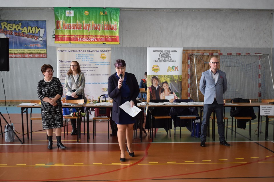 Na początku wystąpił dyrektor Mirosław Kowalski – Gospodarz Szkoły i dyrektor Ewa Koziara Centrum Edukacji i Pracy Młodzieży OHP w Białej Podlaskiej oraz wicestarosta Artur Jaszczuk, który otworzył IX Parczewskie Targi Pracy I Edukacji.