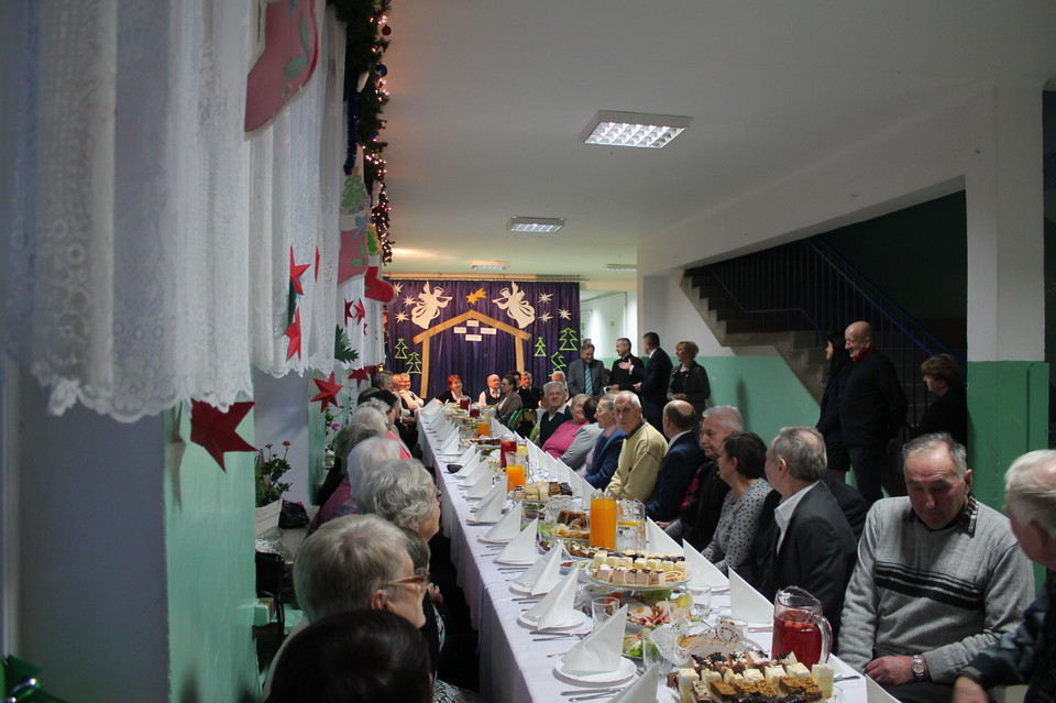 Spotkanie rozpoczęło się o godzinie 16.00. Wójt Gminy Jabłoń Dariusz Łobejko powitał zebranych i złożył życzenia. Przewodnicząca Rady Gminy Jabłoń Agnieszka Kuniszyk złożyła życzenia w imieniu Samorządu Gminy Jabłoń. Tradycyjnie ks. proboszcz Zbigniew Szyprowski odmówił modlitwę, złożył życzenia noworoczne, a następnie wszyscy uczestnicy podzielili się opłatkiem życząc sobie pomyślności w 2018 r.