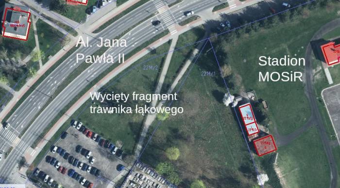 Działka wyciętej łączki oraz stadion MOSiR należą do gminy Parczew
