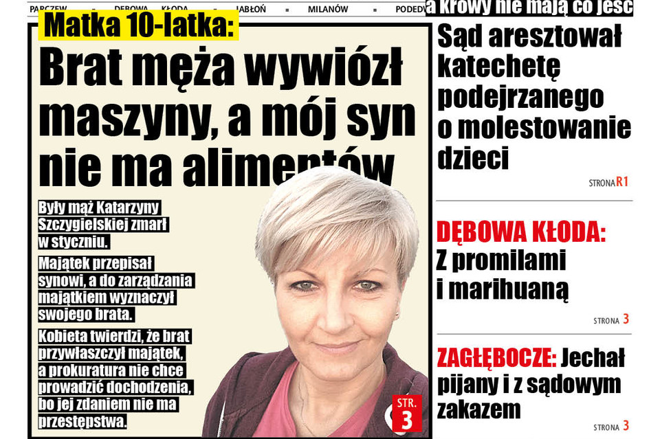 Po śmierci mężczyzny okazało się, że w 2016 roku napisał testament. - Cały majątek mąż przepisał na naszego 10-letniego syna, do którego ja mam prawa rodzicielskie i prawo do opieki. Dowiedziałam się, że w testamencie mąż pozbawił praw do spadku dwie nasze córki i ustanowił, że do pełnoletności naszego syna majątkiem ma zarządzać jego brat – opowiada Katarzyna Szczygielska.