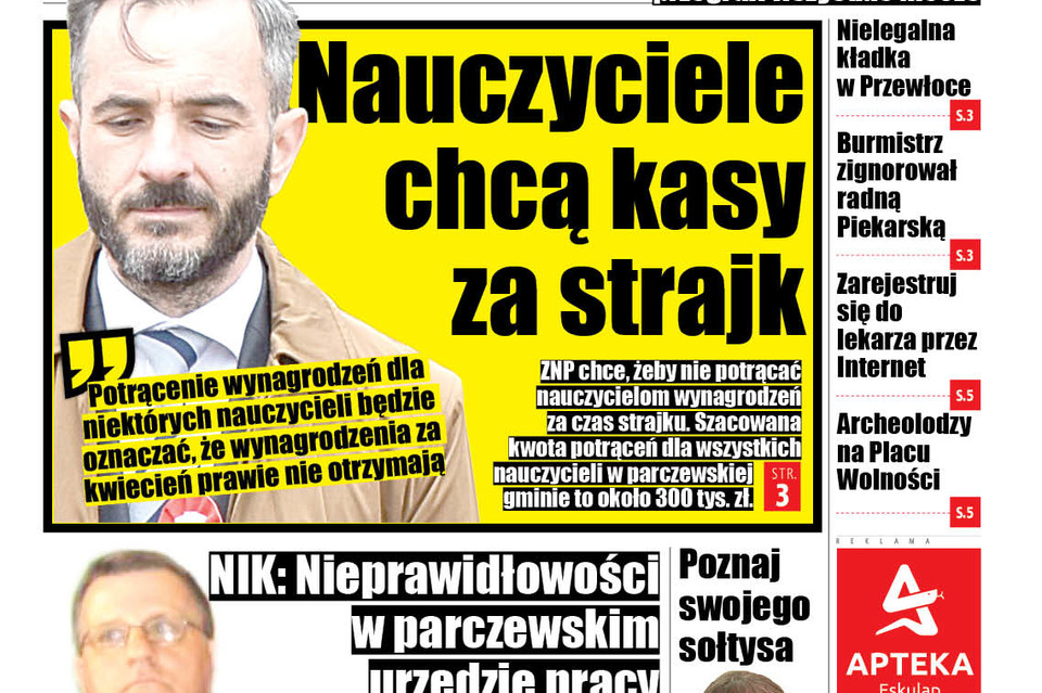 Na wspólnym posiedzeniu komisji stałych Rady Miejskiej Adam Wiśniewski, przewodniczący Komisji Oświaty odczytał pismo od zarządu parczewskiego oddziału ZNP, które wpłynęło do jego komisji. Wiesława Tazbir, prezes parczewskiego ZNP, zwraca się z prośbą o odstąpienie od potrącenia wynagrodzeń nauczycielom, którzy brali udział w strajku.