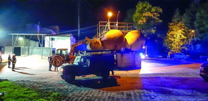 Ciało mężczyzny leżało na kadzi na wysokości około czterech metrów. Żeby je zdjąć, wezwano na miejsce straż pożarną. Strażacy nie podjęli jednak akcji, bo w przewodach biegnących nad zbiornikami z wywarem nadal płyną prąd. Wezwano pogotowie energetyczne, które odłączyło linię. Ciało 32-latka zdjęto przy użyciu ciągnika z ładowarką. Od przyjazdu straży do zdjęcia ciała upłynęło około 1,5 godziny.