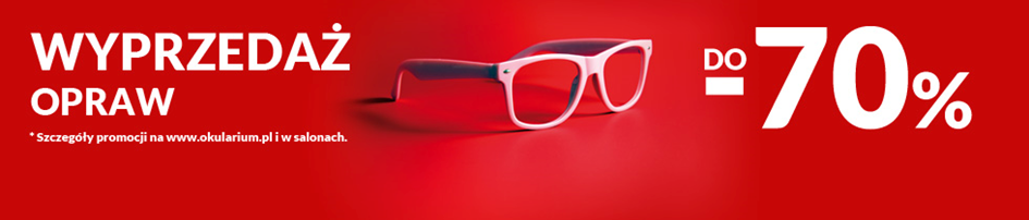 Przypominamy także o nadal trwającej wyprzedaży opraw okularowych i przeciwsłonecznych w salonach Okularium (do 15 września lub do wyczerpania zapasów). Wybrane modele opraw zostały przecenione o 30, 50 i nawet 70%!