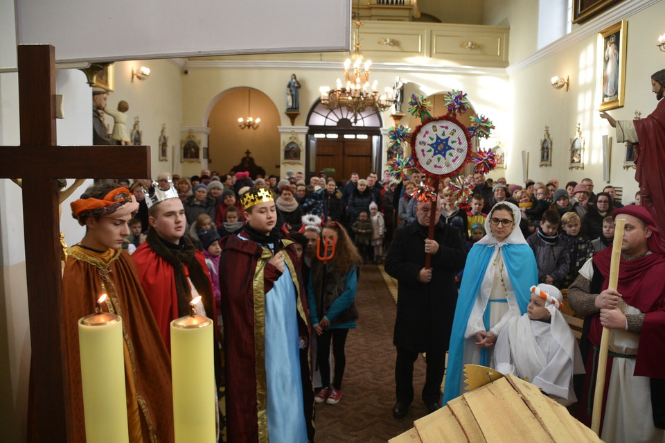 Cała wspólnota Milanowska na czele z Maryją Józefem i Jezusem ( w rolę Świętej Rodziny wcieliła się rodzina Państwa Klejów z Milanowa) po Mszy świętej wyruszyli z Kościoła w koronach, śpiewając kolędy do GOK-u .