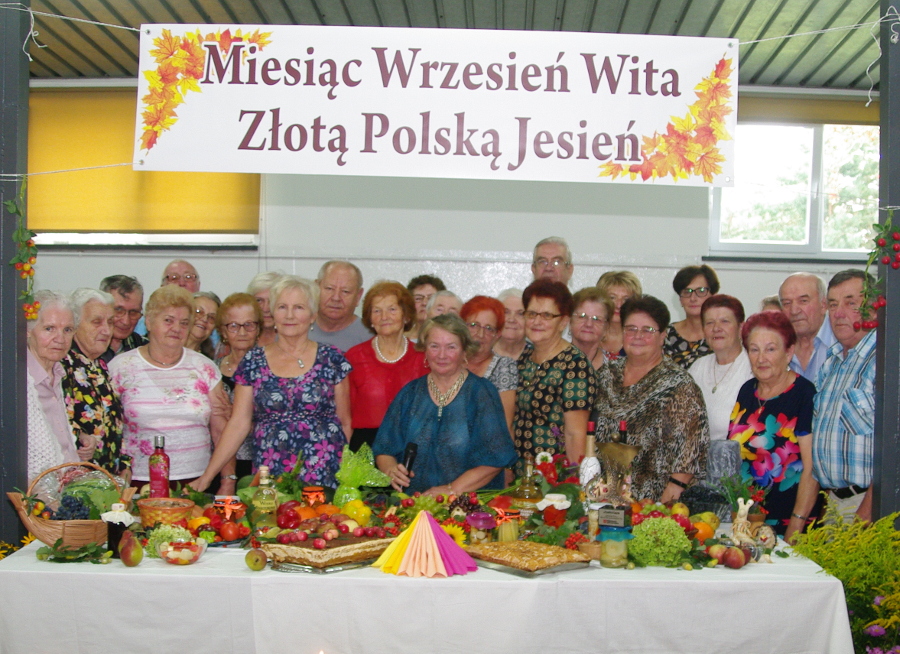 – Zorganizowałam tę imprezę pod szyldem "Miesiąc wrzesień wita Polską Jesień" dlatego, że większość emerytów z mojego klubu pochodzi z wiosek. Jesień to czas zbiorów, święto plonów. Na tym stole mamy wszystko z naszych sadów i ogrodów. Są świeże jabłka, gruszki klapsy, ale też szarlotka, jest ciasto gruszkowe oraz z borówki amerykańskiej. Są pomidorki koktajlowe i słoiczki z grzybkami. Są ogóreczki i papryka słodko-kwaśna. Tu są grzybki marynowane, orzechy laskowe i włoskie. Mamy swojskie wina z winogron, z malin i z truskawek. Mamy też nalewki z czarnego bzu i z pigwy oraz sok z czarnej porzeczki. Polecamy papryczki we wszystkich kolorach i smakach. Mamy winogrona, kabaczki i kapustę. Urodziliśmy się na wsi i szanujemy rolników, starszych ludzi, tym bardziej, że sami jesteśmy seniorami. Klub "Senior Aktywny" planuje następną imprezę w październiku, po wykopkach. Jest planowany wypiek ziemniaków z masełkiem i śpiewanie piosenek z czasów młodości