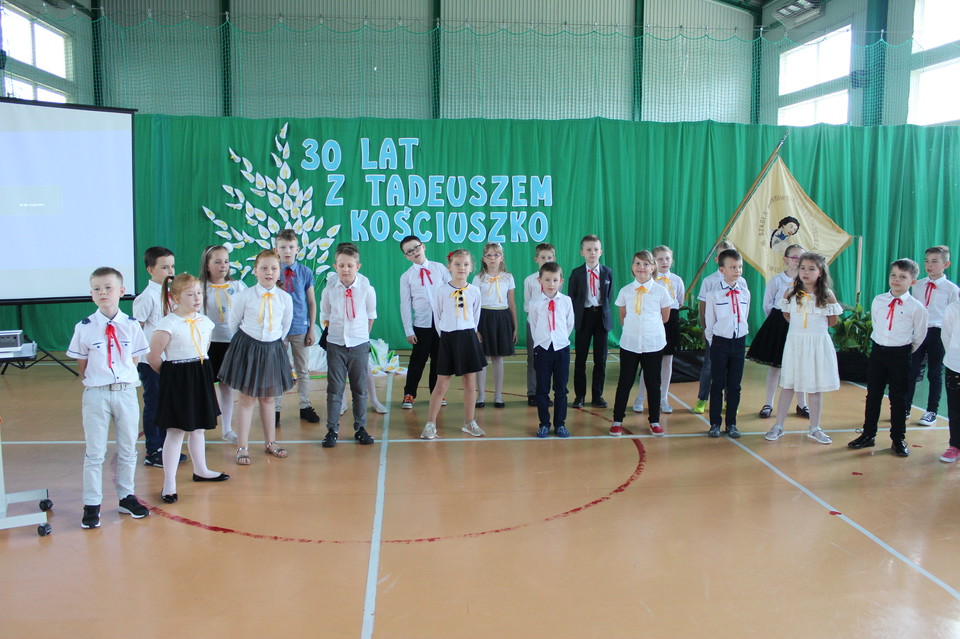 Podczas niej zaproszeni goście mieli możliwość powspominania, jak to było 30 lat temu. Od pana Jana Najsa dowiedzieliśmy się wielu ciekawostek o naszej szkole, skąd wziął się pomysł, aby wybrać na patrona Tadeusza Kościuszkę. Pani Teresa Gładun – autorka tekstu hymnu szkolnego – zapoznała nas z jego genezą. Natomiast projektantka naszego sztandaru – pani Teresa Olszewska – opowiedziała nam, jak on powstał.