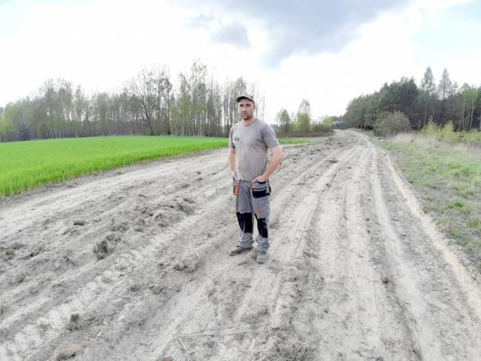 - Pomagałem w wyrównywaniu tej drogi. Odrzucałem korzenie. Operator równiarki poprosił mnie, żebym swoją talerzówką przejechał po drodze i pociął darń, to będzie mu łatwiej wyrównać drogę i tak zrobiłem. Operator poszerzył drogę do około 11 metrów. Do łąki sołtysa jest dobrze, a dalej na środku jest garb - relacjonuje Sebastian Osek. - Operator powiedział, że skończy następnego dnia i już nie przyjechał. Sołtys uważa, ze jest dobrze, bo ma dobry dojazd, a reszta go już nie obchodzi - dodaje mężczyzna.