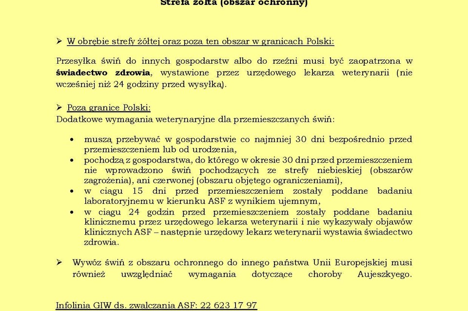 - po uzyskaniu tych dokumentów świnie przemieszcza się bezpośrednio do innego gospodarstwa lub rzeźni w obrębie tej strefy,