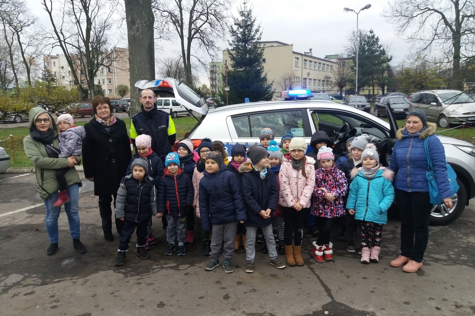 Goście zapoznali się ze sprzętem jaki jest na wyposażeniu mundurowych. Mogli też usiąść za kierownicą oznakowanego radiowozu. Policjant odpowiadał też na pytania jakie zadawali najmłodsi.