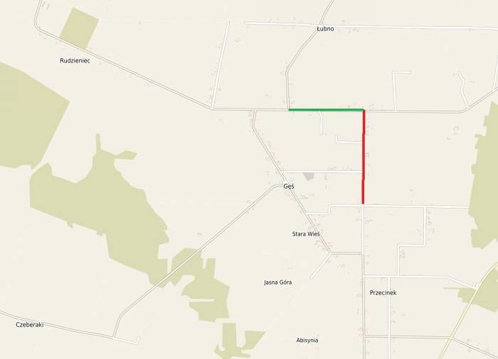 Uzasadnieniem zmiany kategorii tych dróg jest chęć złożenia wniosku do Funduszu Dróg Samorządowych o przebudowę drogi na całej jej długości od Gęsi do Jabłonia do tzw. mleczarni.