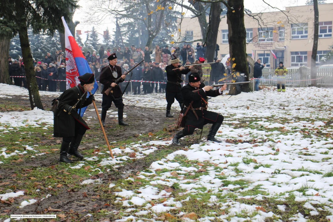 Wszystkie te działania były wyrazem hołdu i czci dla historii tamtych czasów, symboli narodowych oraz bohaterów, którzy w imię wolności oddali życie. To właśnie dlatego, najważniejszymelementem realizacji projektu były uroczystości upamiętnienia Bitwę pod Kolanem i Holendernią w dniu 19.11.2023 r. Całość wydarzenia rozpoczęto od złożenia wieńców na pomniku znajdującym się na cmentarzu parafialnym i mogile dwóch powstańców styczniowych pochowanych przy lesie „Smuga” w Kolanie i msza święta w kościele parafialnym. Następnie odbyła się inscenizacja wydarzeń z tamtych lat przedstawiona przez grupy rekonstrukcyjne.Inscenizacja pozwoliła unaocznić i wczuć się w przebieg bitwy. Kolejnym etapem była akademia patriotyczna przygotowana przez nauczycieli i dzieci ze Szkoły Podstawowej im. Amelii hr. Łubieńskiej w Kolanie. Po zakończonej części artystycznej nastąpiło wręczenie nagród i dyplomów dla najlepszych uczestników w przeprowadzonym teście wiedzy i konkursie dotyczącym bitwy i powstania styczniowegooraz wystawa pokonkursowa prac plastycznych.Całość uroczystości zakończono ciepłym poczęstunkiem przygotowanym dla wszystkich uczestników.